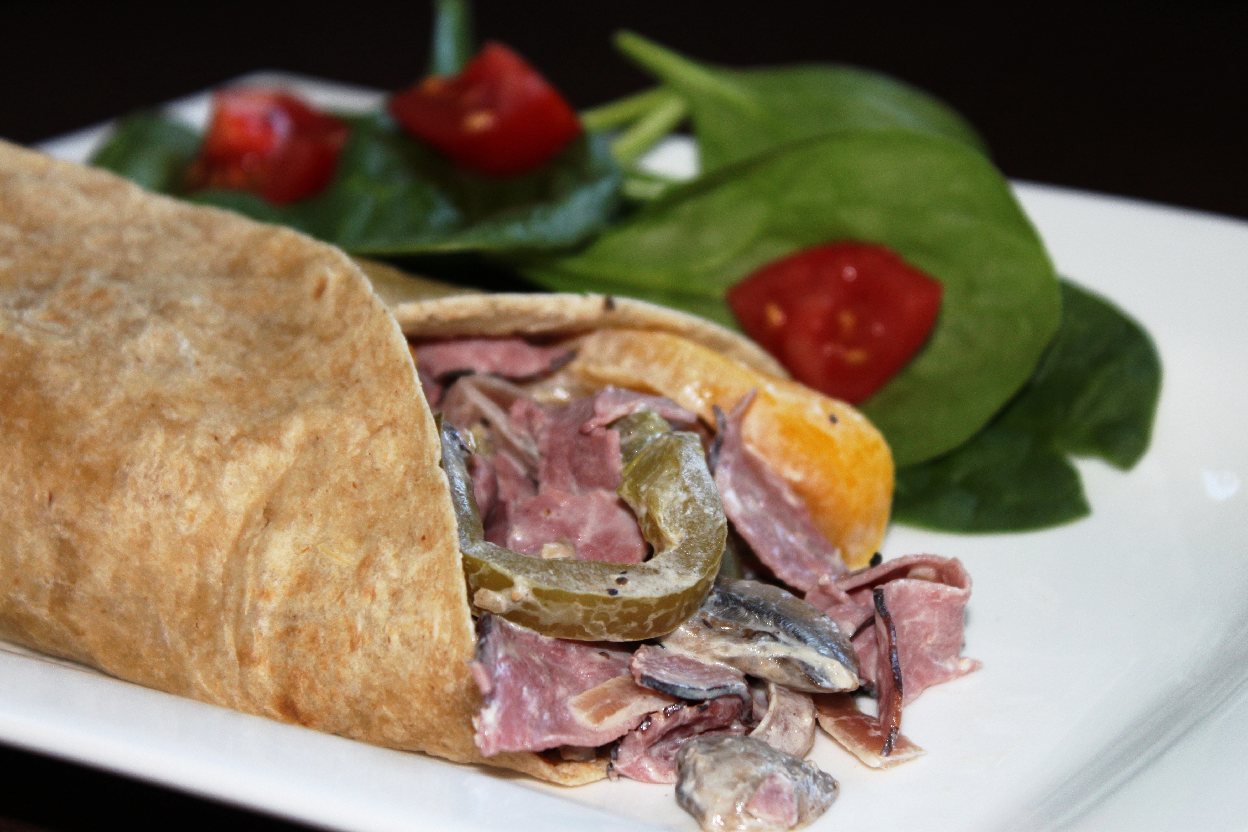 *I like these best warm. However, they are also good cold. If eating them cold, you’ll spread about 1 tablespoon of cream cheese evenly on the surface of each tortilla. Then layer the peppers, onion, mushrooms, and roast beef on top. Roll it up and enjoy.