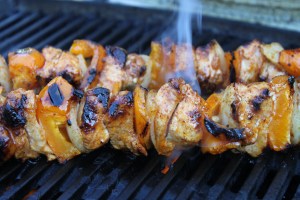 In a small bowl, whisk together the olive oil, vinegar, and lime juice. Stir in spices. Marinate chicken and vegetables for 4-6 hours or overnight. (You can place the chicken and vegetables in separate shallow containers. I make sure the chicken is covered with marinade first. Any leftover marinade, use for the vegetables. And, if I’m lucky – I reserve about 3 tablespoons to brush on my kabobs while they’re cooking.)