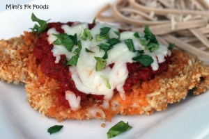Who said Chicken Parmesan had too many calories!? Well, make it my way & you’ll hardly know the difference AND you’ll walk away with a balanced meal! This was seriously awesome! I hate to keep putting the exclamation marks, but I can’t help it because it really was that good. There is a little more prep time involved in this recipe, but I totally think it was worth every minute. I thought the chicken was flavorful, the breading was crisp, and the sauce & cheese on top went great with it. You can use my recipe for the tomato sauce, or a healthy marinara sauce will work too (like Heart Smart Prego).