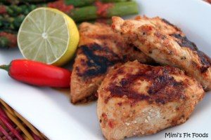 McCormick brand makes a great line of marinades they call Grill Mates. This is how I made this chicken. I purchased the Mexican Fiesta marinade, mixed it up, poured it over my chicken, let it soak in the flavor for a while, and then cooked it on my indoor grill (aka George Foreman grill). The flavor was full of Mexican spice and the chicken was incredibly tender.