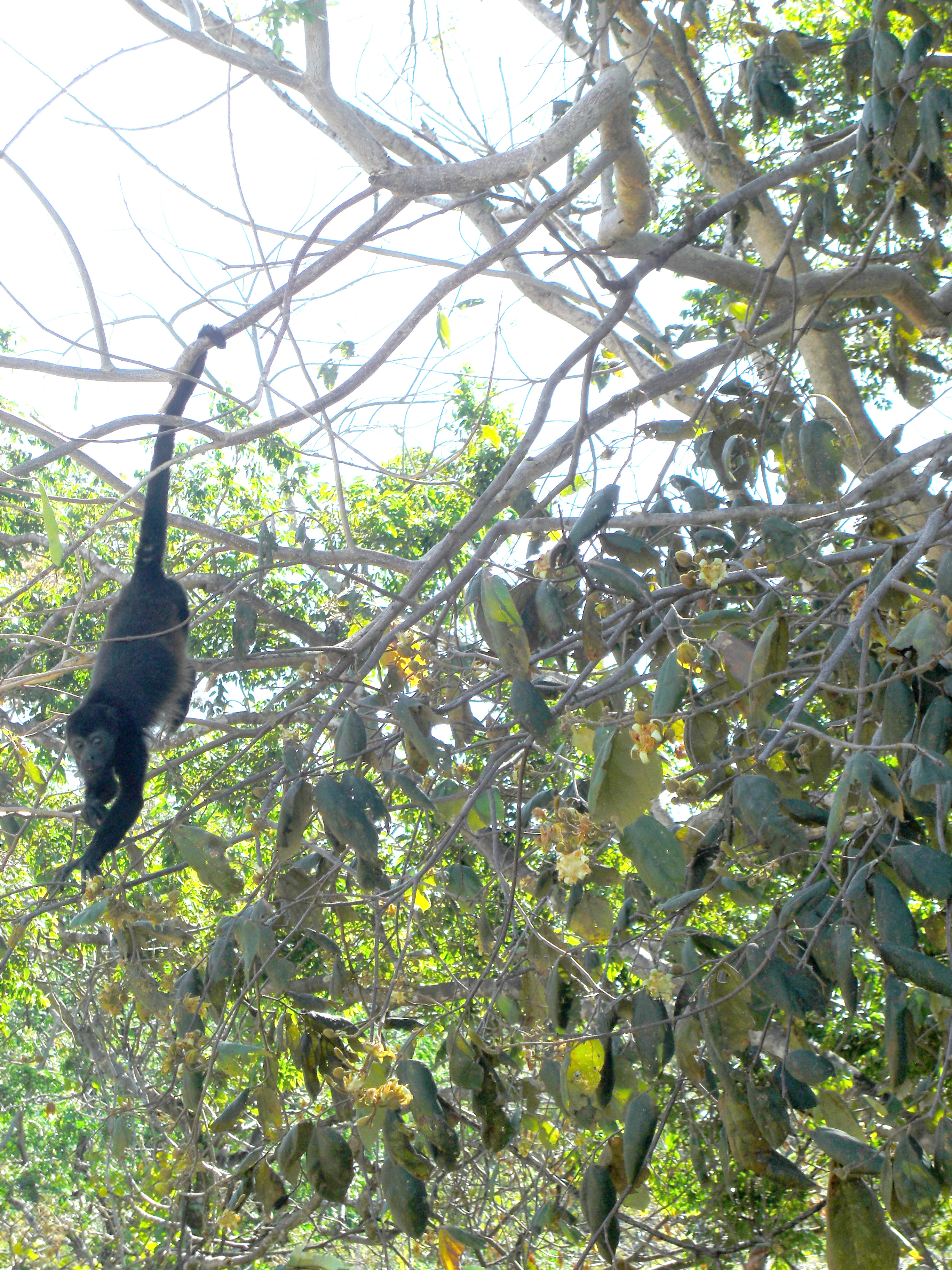 We found a family of monkeys in the trees down on Play Hermosa. We found them because they are Howler Monkeys and they were howling. We heard them, looked up, and there they were. There were even baby monkeys! This one cracked me up because he was dead asleep, all sprawled out on this branch. They were SUPER fun to watch!