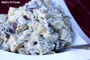It’s summer folks, and if you’re anything like me and my family, you’re doing a lot of BBQ’s and picnics. We seriously eat more outdoors in the summer than we do indoors. So, it’s pretty handy to have a potato salad in the recipe file that I can turn to. I mean, what says American BBQ/Picnic more than potato salad?? This one is pretty darn tasty without being heavily loaded with calories (like most potato salads). I’ve cut out the mayo altogether, and substituted blended cottage cheese. This worked like a charm and I promise that you nor your BBQ guests (if you choose to share) will even know there is a difference. The spices and herbs flavor the salad up beautifully so that it doesn’t taste bland. I must also add that I like that this potato salad can be served warm or at room temperature. That means that we don’t have to make it WAY in advance and then let it refrigerate for hours (although I did eat the leftovers out of the fridge the next day and they were tasty cold too). While some people are super at planning ahead, others of us tend to rely on last minute recipes. This one qualifies as such. Now, let’s get outside and start eating some yummy summertime foods.