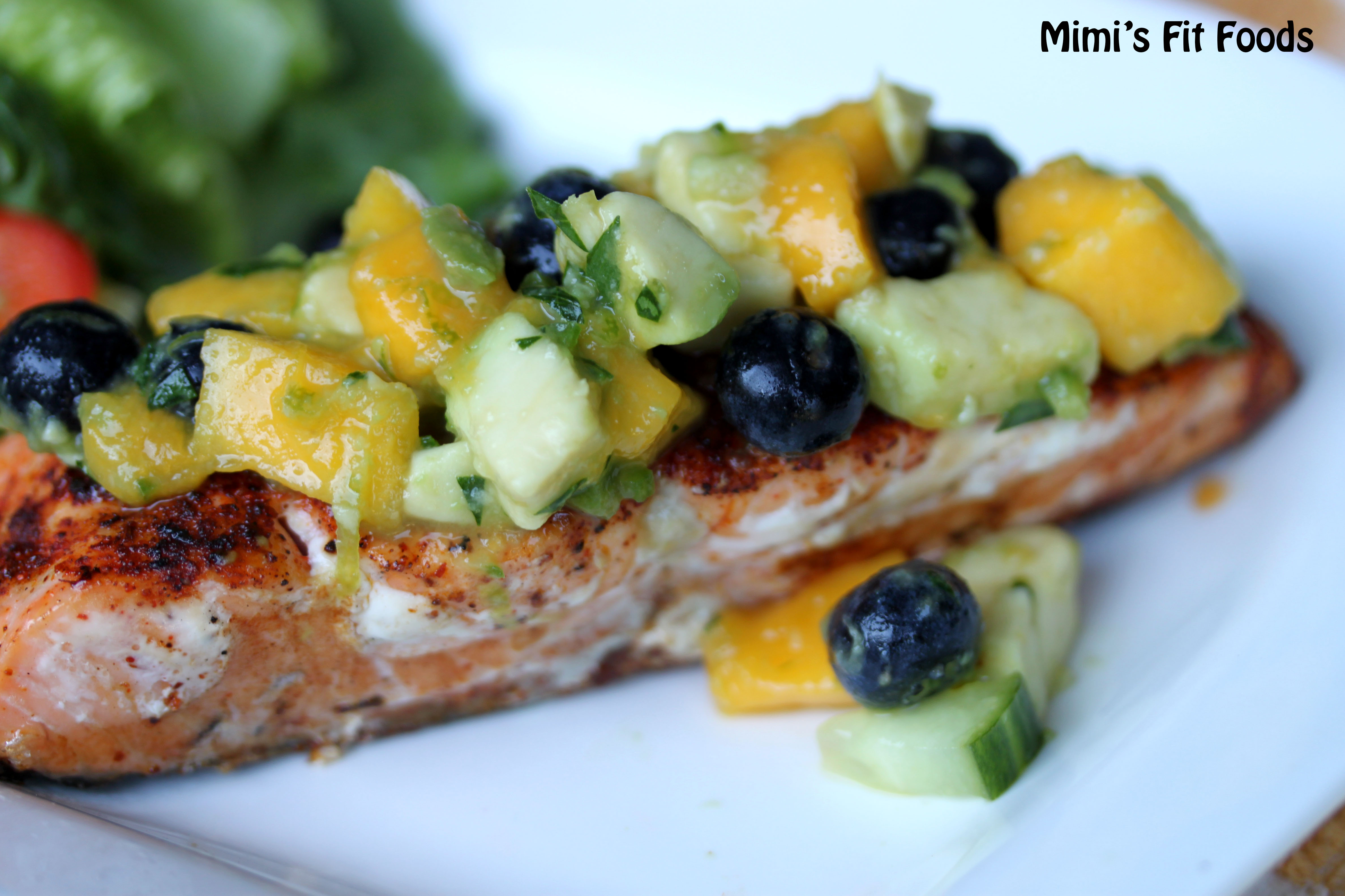 Chili Salmon with Mango, Cucumber, & Avocado Salsa