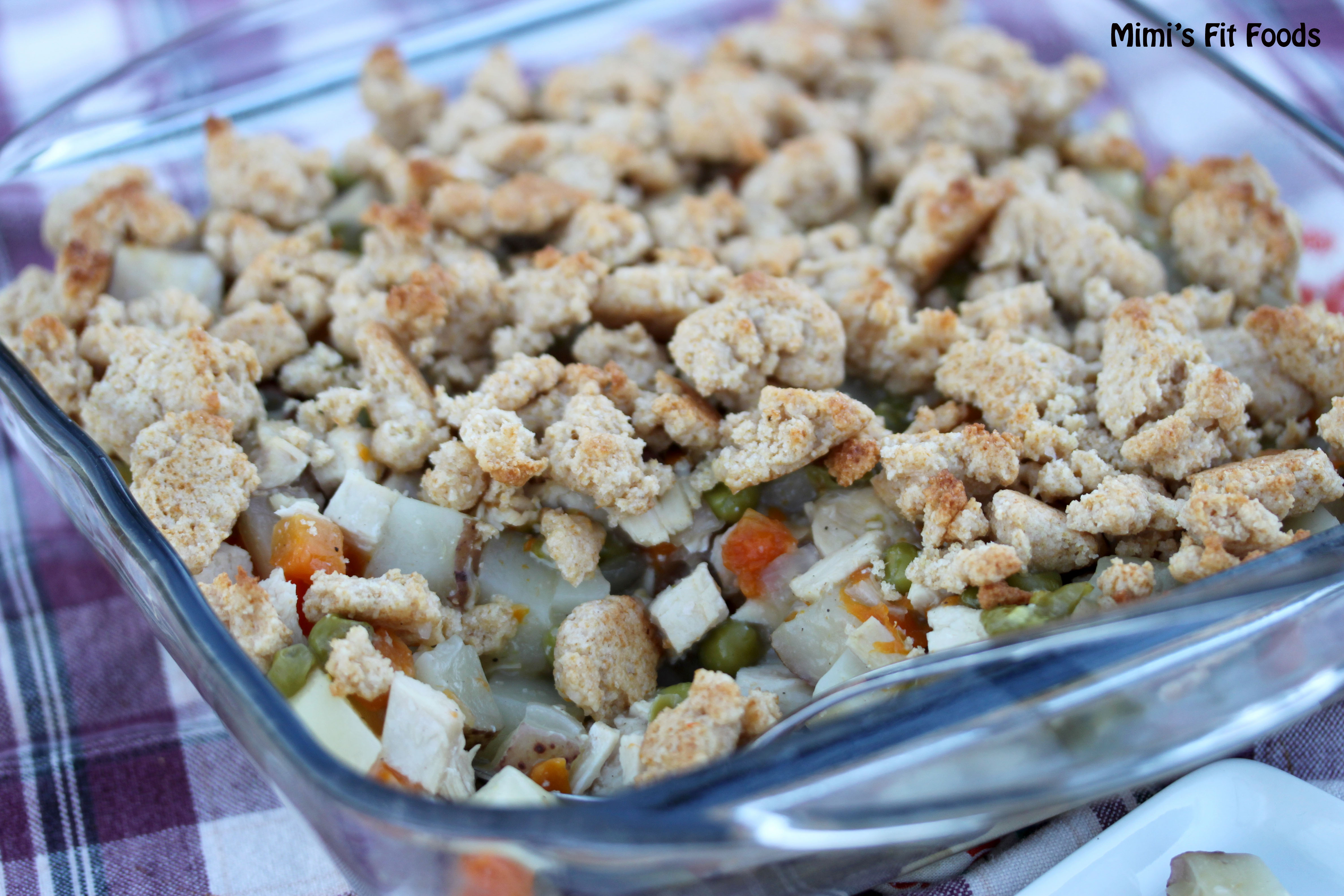 This healthier chicken pot pie is so fantastic because we are able to cut calories by cutting out the traditional crust. And, to be completely honest, I totally prefer this crumble biscuit topping anyway! I had you at “crumble,” didn’t I? It is everything that a crumble topping should be. It requires one extra step, but it’s WAY worth it (and you can skip it if you really don’t care). You partially bake the crumble separately from the filling, then scatter it over the top and slide it back in the oven to finish baking. This increases the crunch factor (no soggy topping).