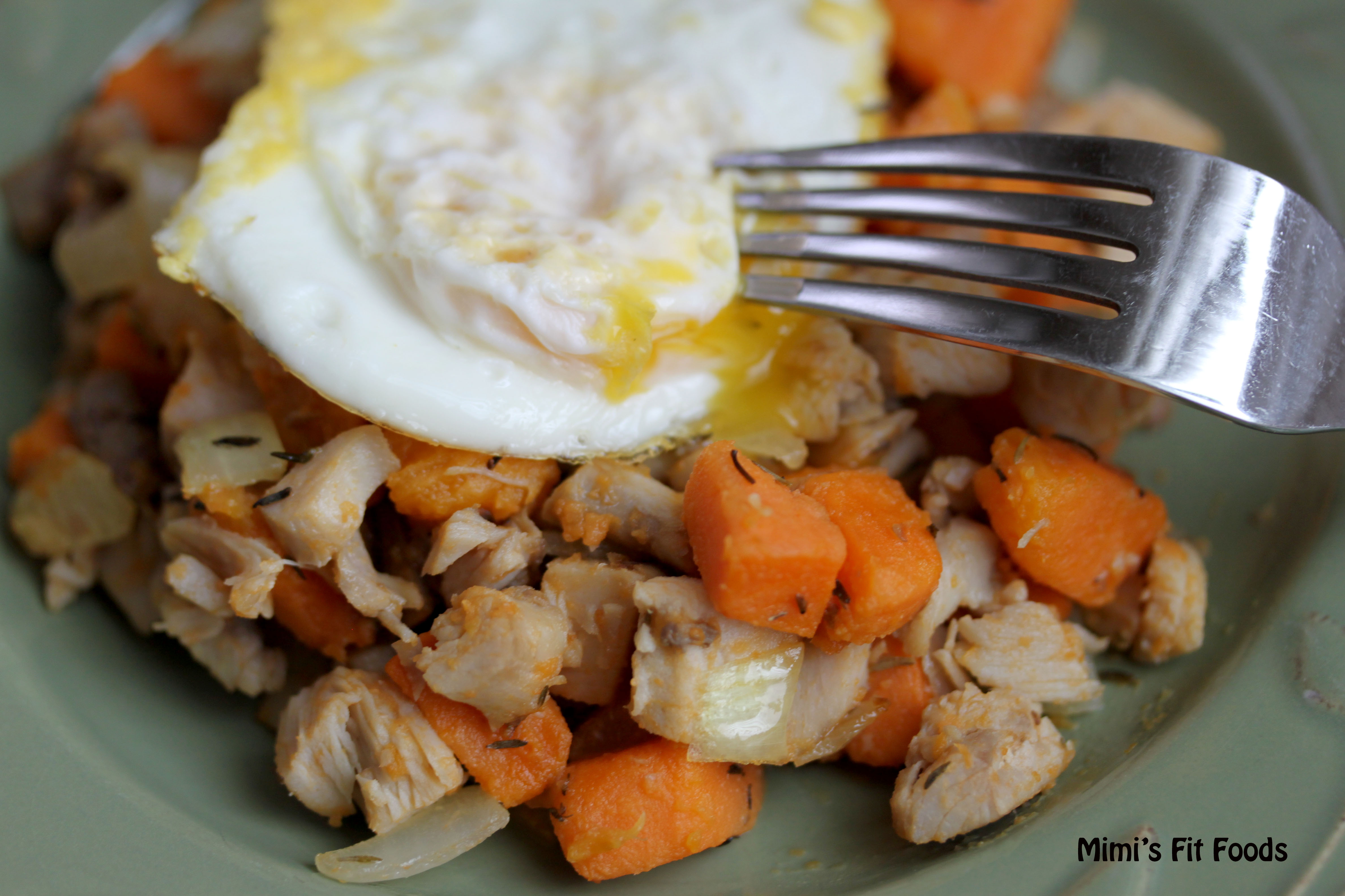 Here’s another use for those turkey leftovers! It may seem kind of weird at first, but you gotta trust me that it’s SO good! It makes more of a savory breakfast, and I loved it. The onions get caramelized, the addition of thyme makes it so fresh and savory, and the turkey and sweet potatoes are a major hit. Of course, it’s that runny egg that REALLY tops the dish off! And, while we enjoyed it for breakfast . . . I can honestly say that we would enjoy it for lunch or dinner too.