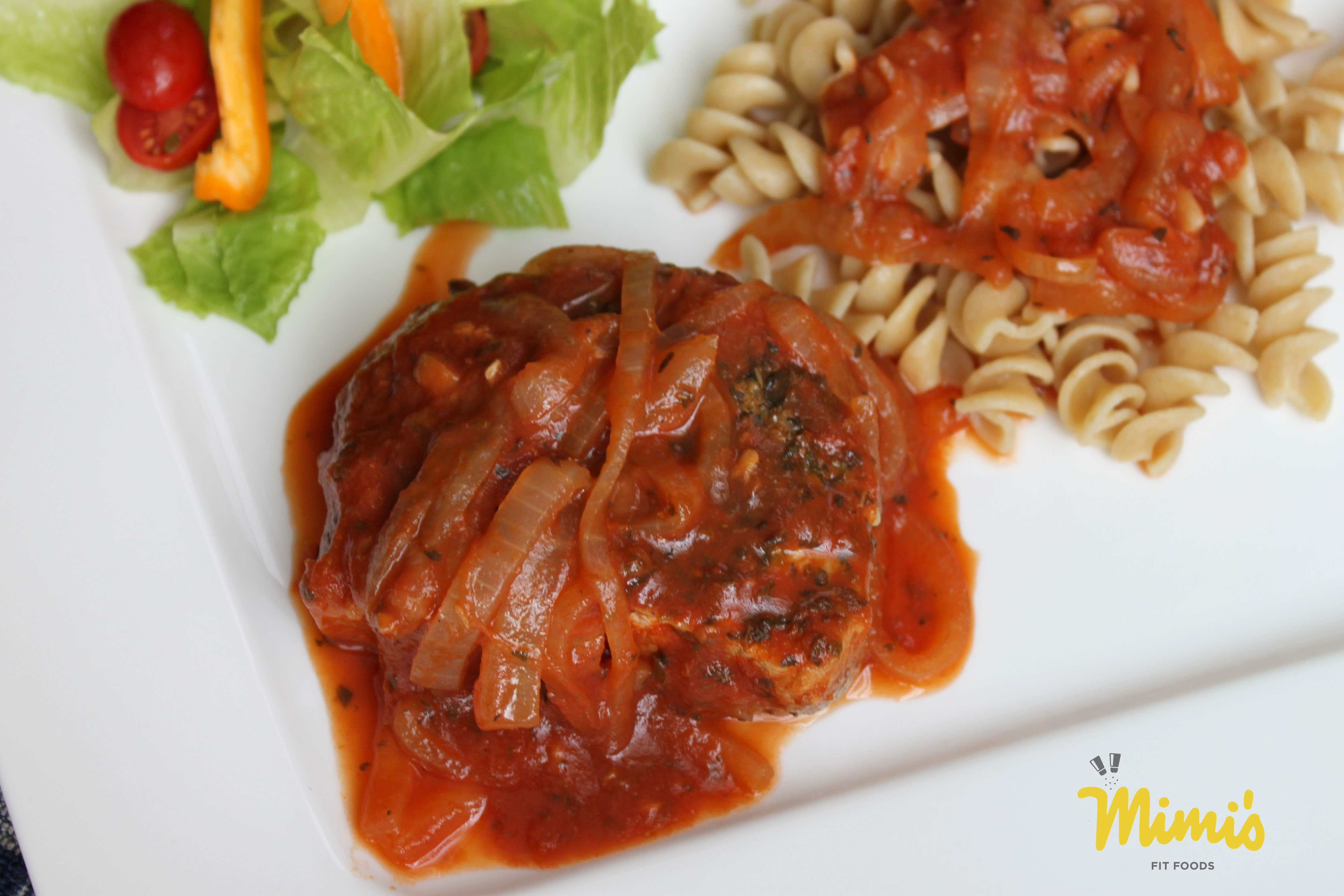 Until then, we’ll keep up with the new recipes and let’s all commit (or re-commit) to live a healthy and full life while eating food that is not only good for us, but tasty too! Our house started the New Year with this delicious pork chop recipe. We don’t have pork all that often in our house, but we do like to have it occasionally for a little change. We loved how this turned out. It was so full of Italian flavors and was as far from bland as possible! It is simple to throw together and allows enough time to boil noodles while the pork cooks completely through. I loved the tender, almost caramelized onions that went with the dish. Seriously soooo good with the pork!
