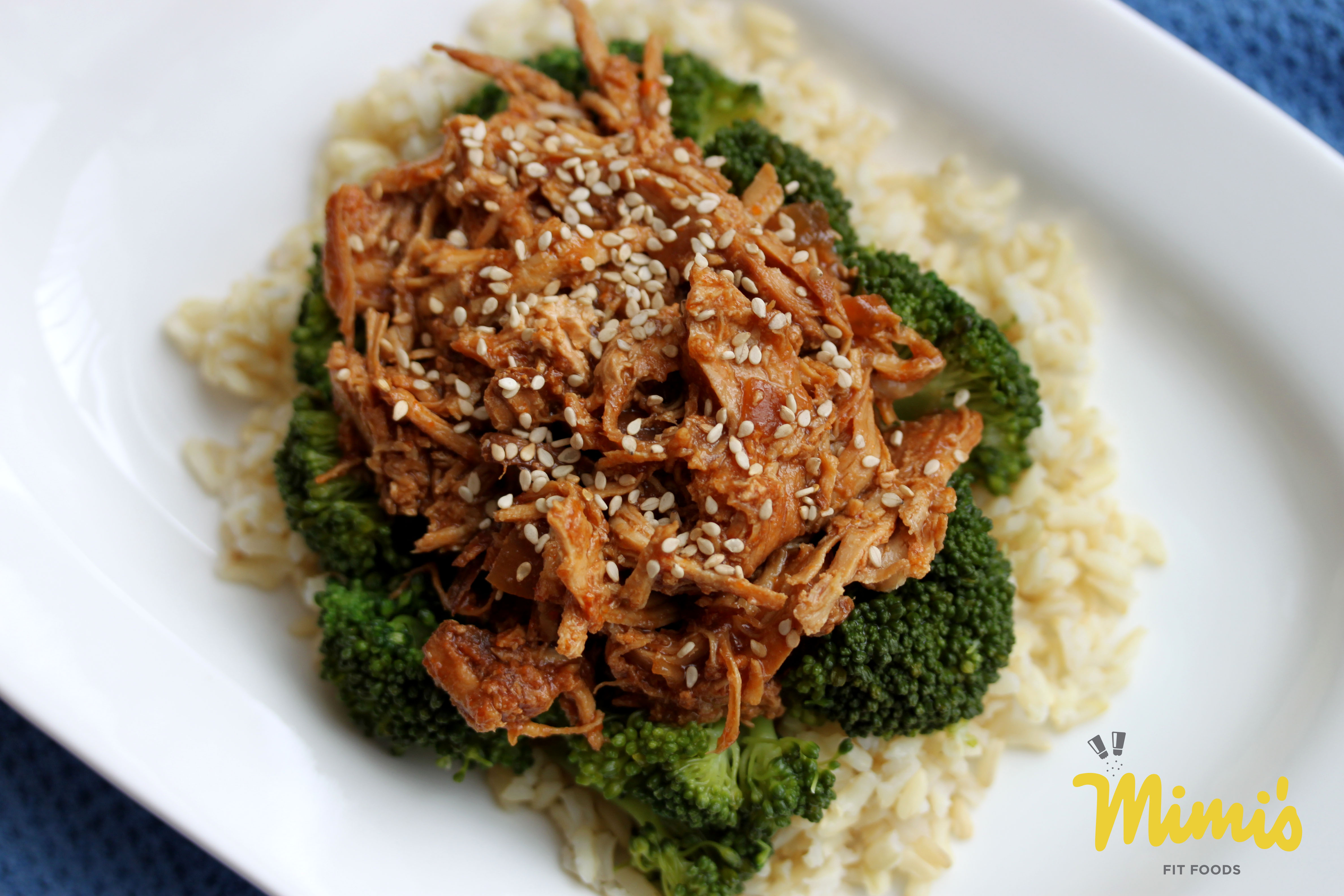 When ready to serve, lay the broccoli over the rice, and top with 3 ounces of the chicken/sauce mixture, then sprinkle with sesame seeds. Couldn’t be easier.