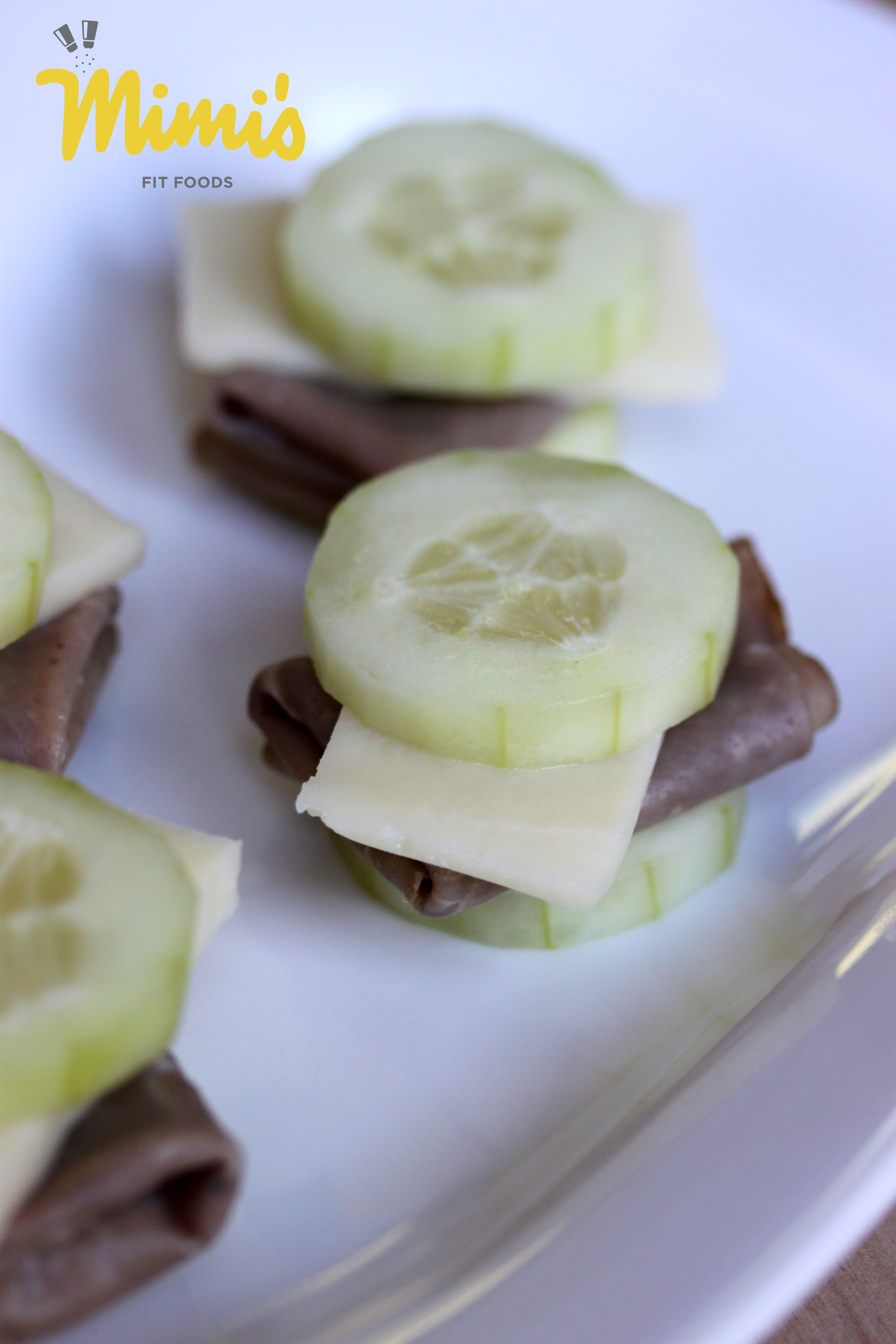 Cucumber Sandwiches! What an easy snack idea. It probably goes without saying that these are a breeze to put together. I mean, it’s hardly a recipe at all, but rather an idea. I say that because you can be a little versatile with this. You can use different varieties of cheese and sandwich meats. I also think these are good dipped in mustard, as well as sprinkled with spices (cracked black pepper, Montreal Steak Seasoning, etc.). There are a variety of options that still help to keep these babies low in calorie count, high in protein, and low in carbs. Whoohooo!